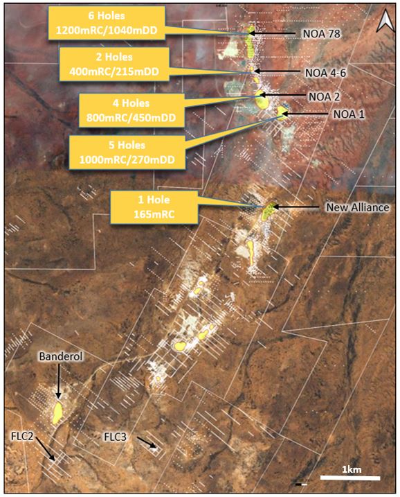 - The Phase 2 program is targeting mineralization in economic grades and thicknesses underneath NOA 1, NOA 2, NOA 4-6 and NOA 7/8.